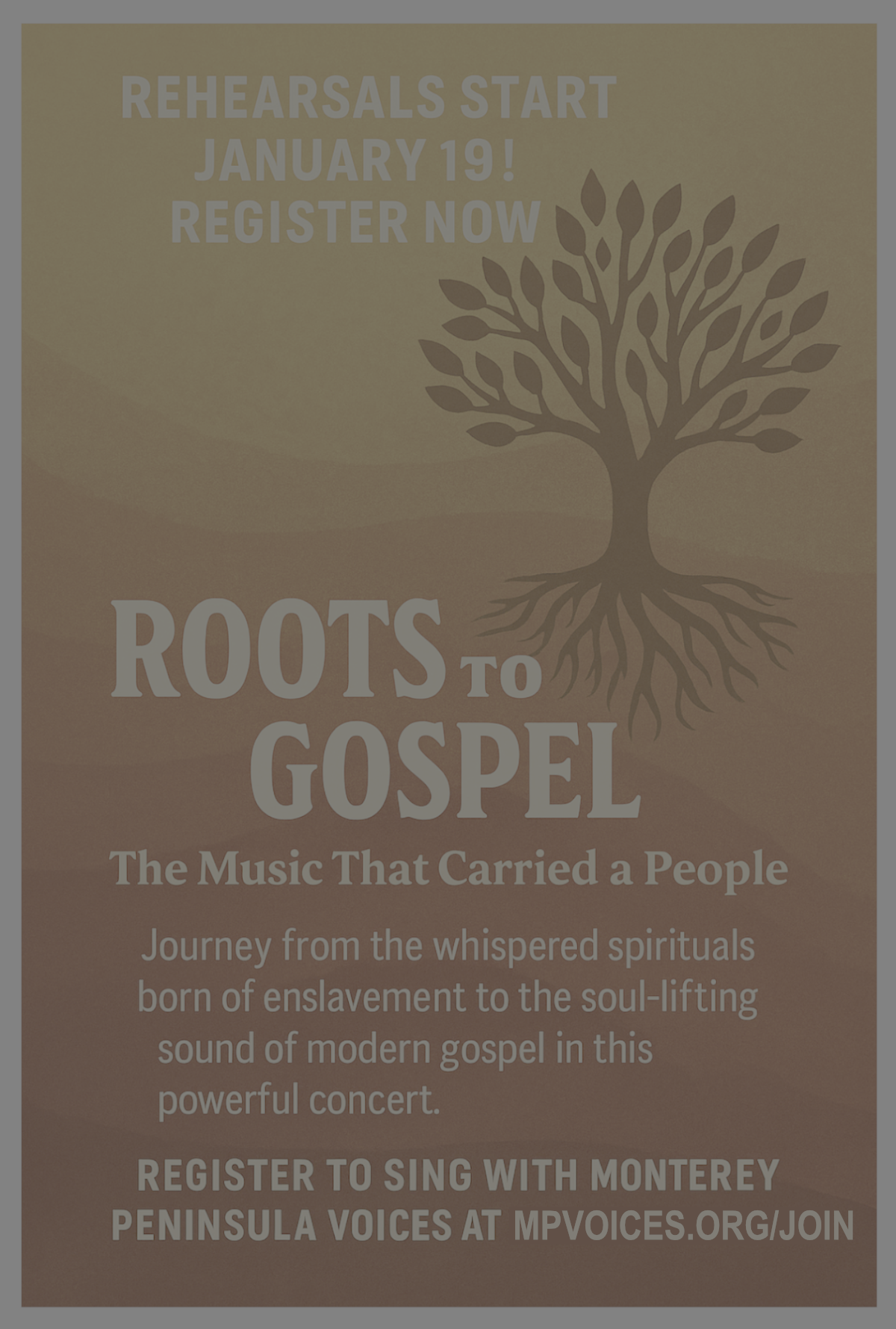 Interested in singing with Monterey Peninsula Voices? Last day to register! Register now to be a part of "Roots to Gospel.'